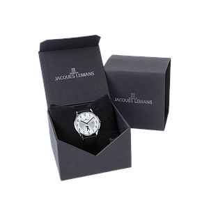 Hr. Armbanduhr Jacques Lemans, weißes Ziffernblatt, Lederband